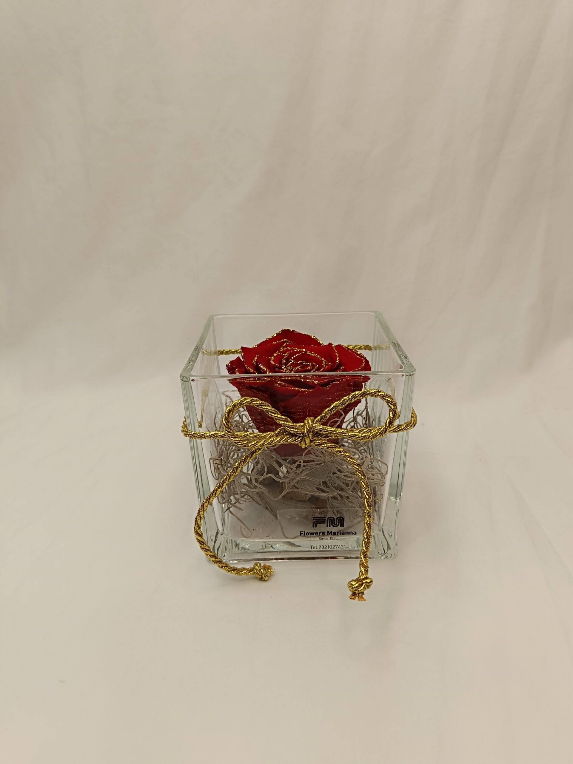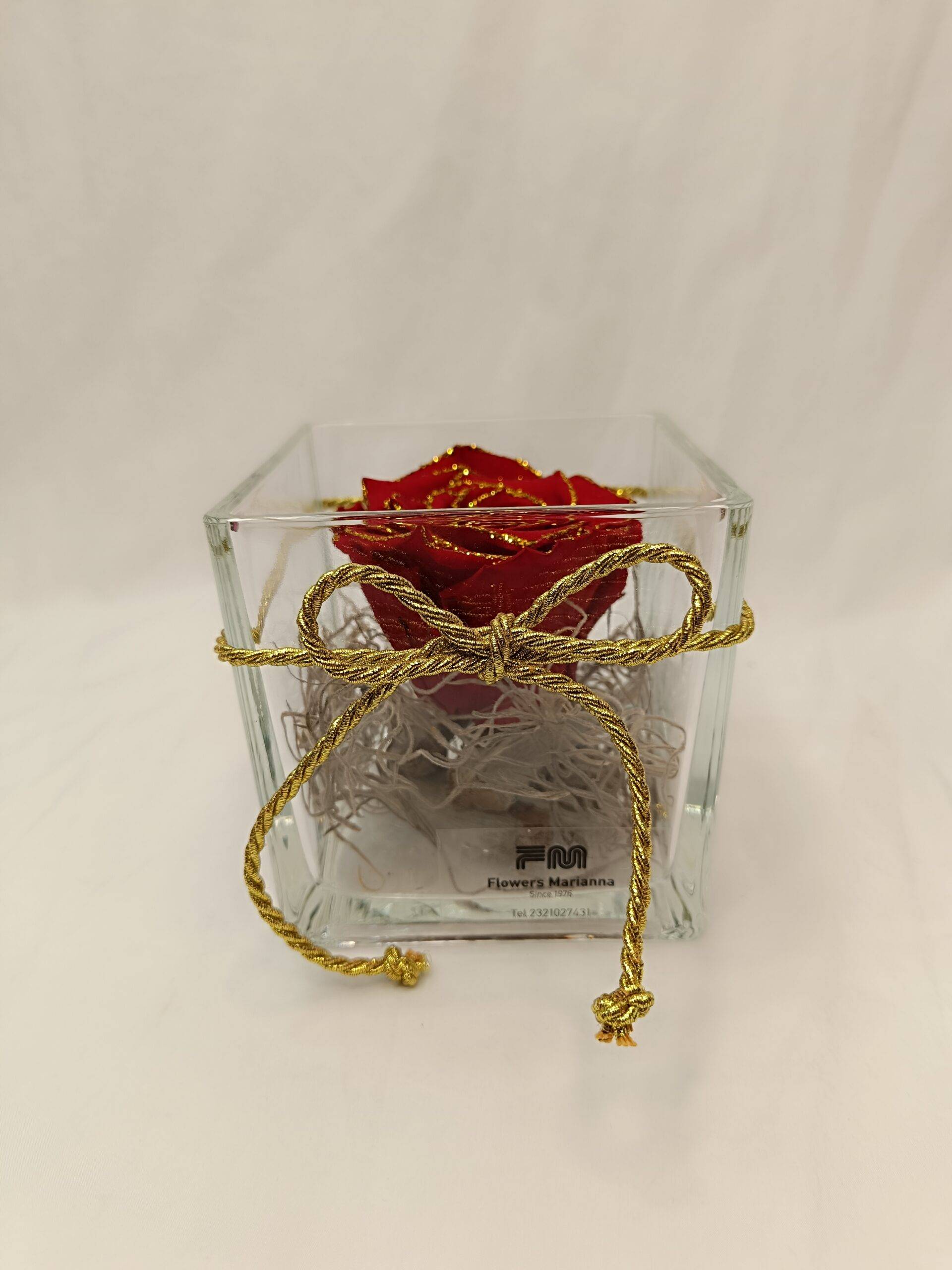 Αποχυμωμένο τριαντάφυλλο με γκλίτερ σε τετράγωνη γυάλα 10×10 εκατοστά