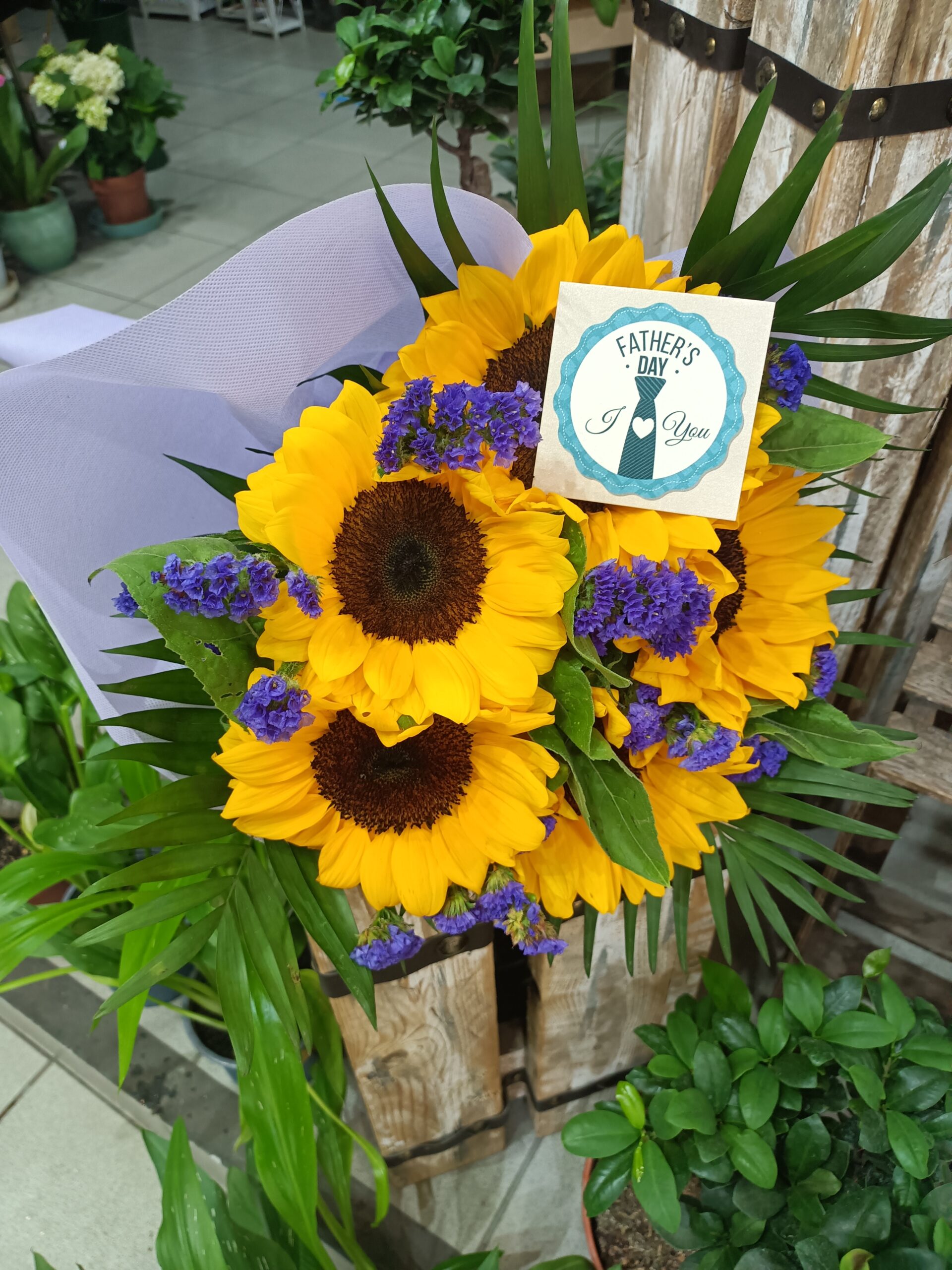 Μπουκέτο από ηλίανθους και προβάτσια!!!Ύψος μπουκέτου 55 εκατοστά!