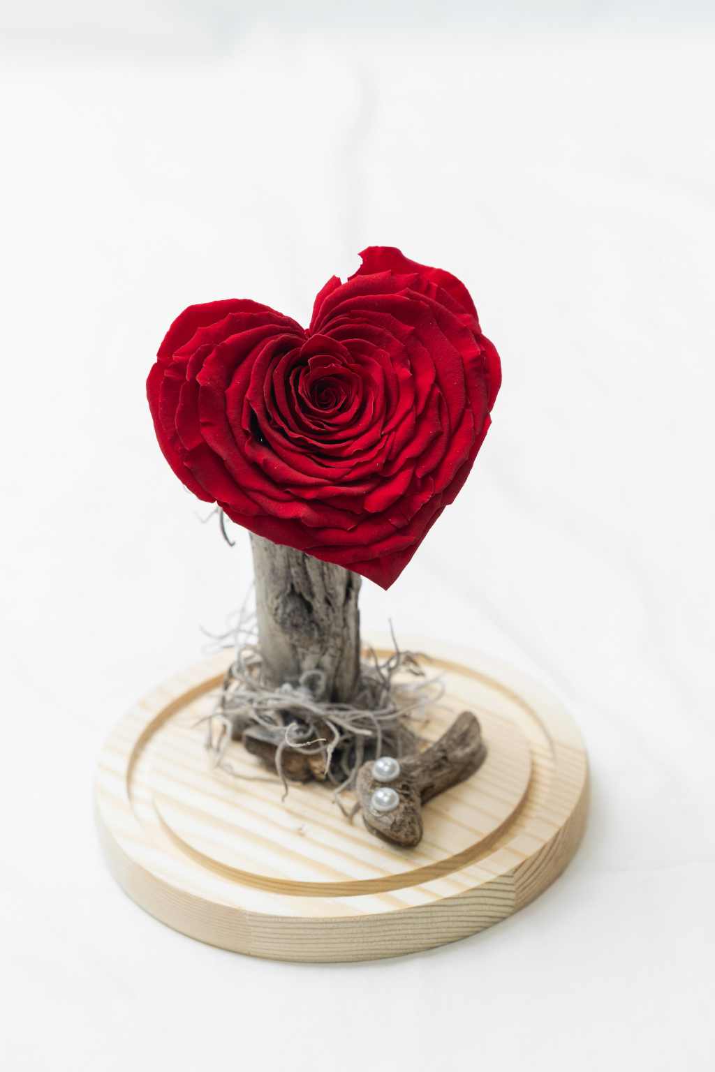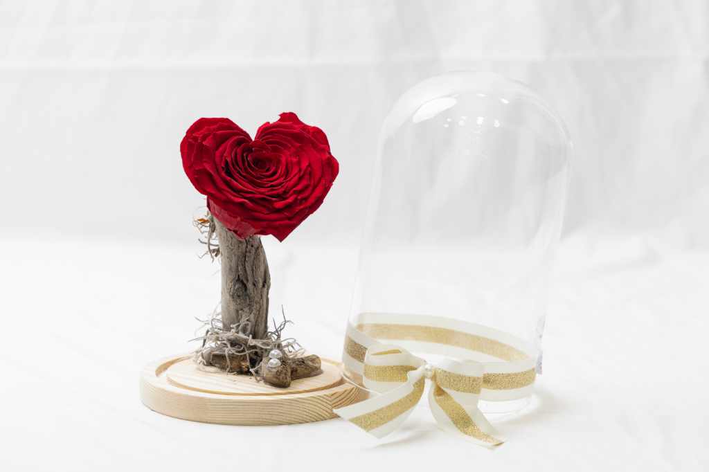 Αποχυμωμένο τριαντάφυλλο καρδιά Xxl σε γυάλα καμπάνα!Διαστάσεις γυάλας 20×12 cm