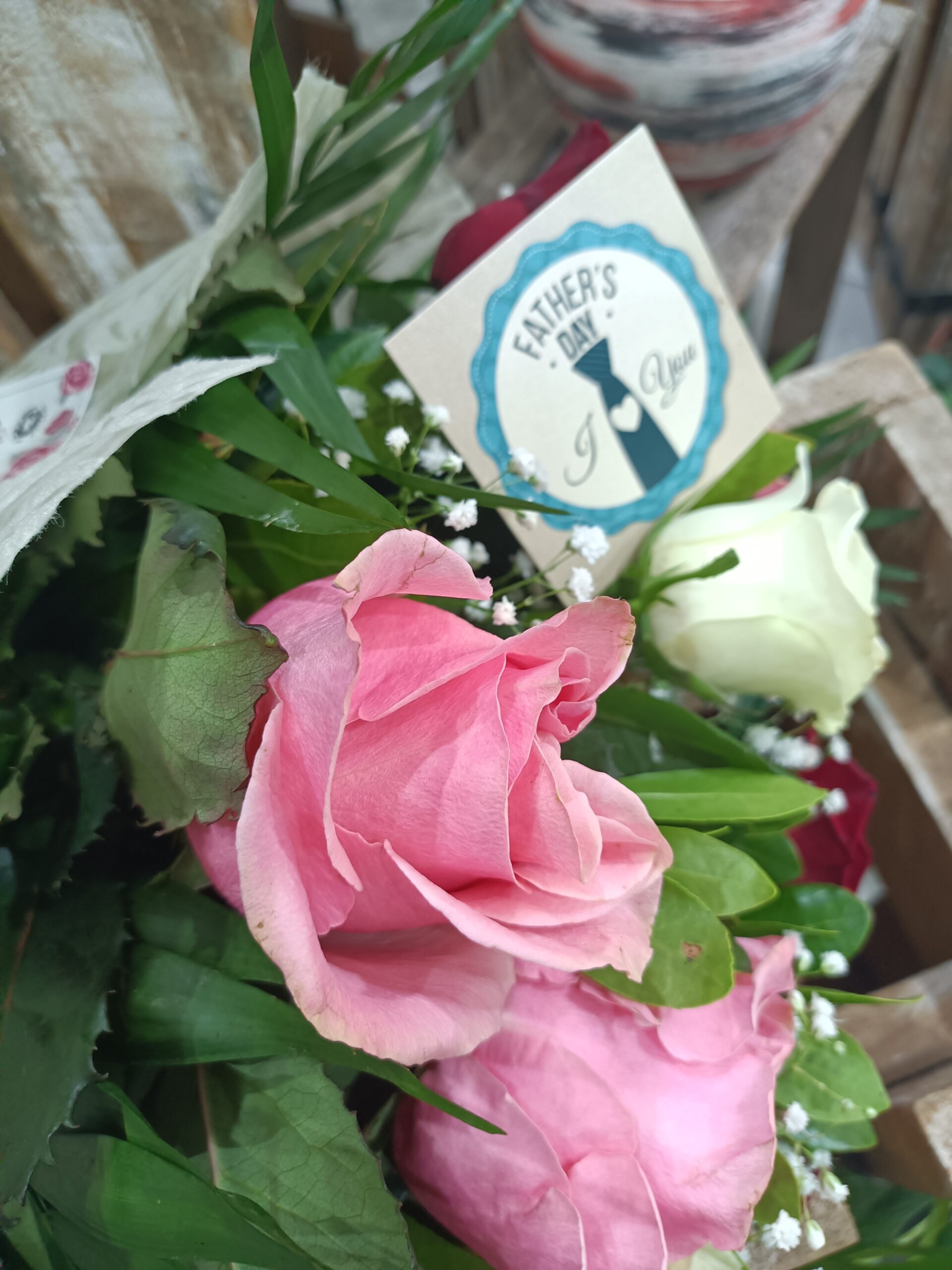 Μπουκέτο από λευκά , κόκκινα και ροζ τριαντάφυλλα!!!Ύψος μπουκέτου 55 εκατοστά