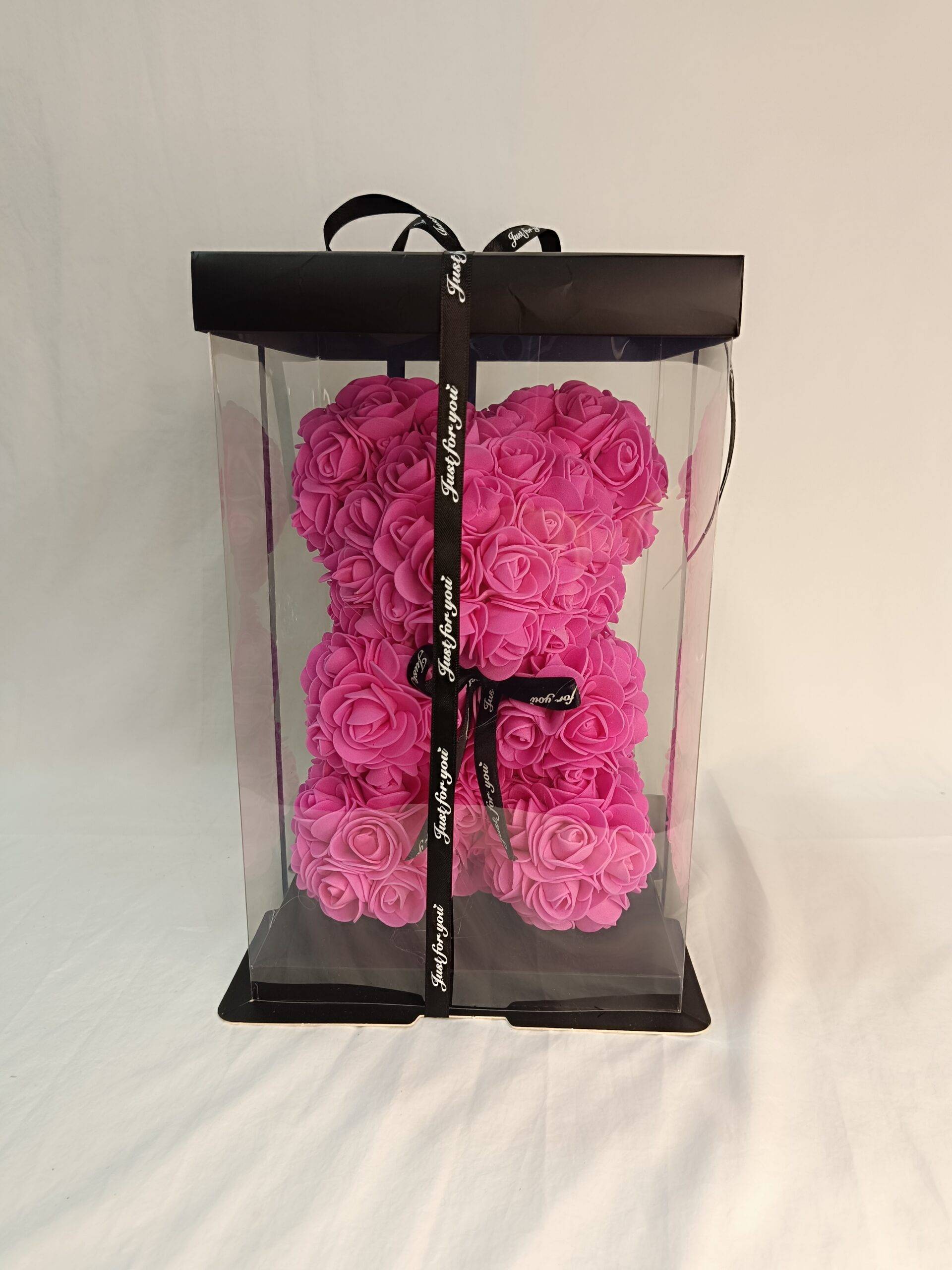 Rose bear φουξ 25 εκατοστά σε διάφανο κουτί!!!!