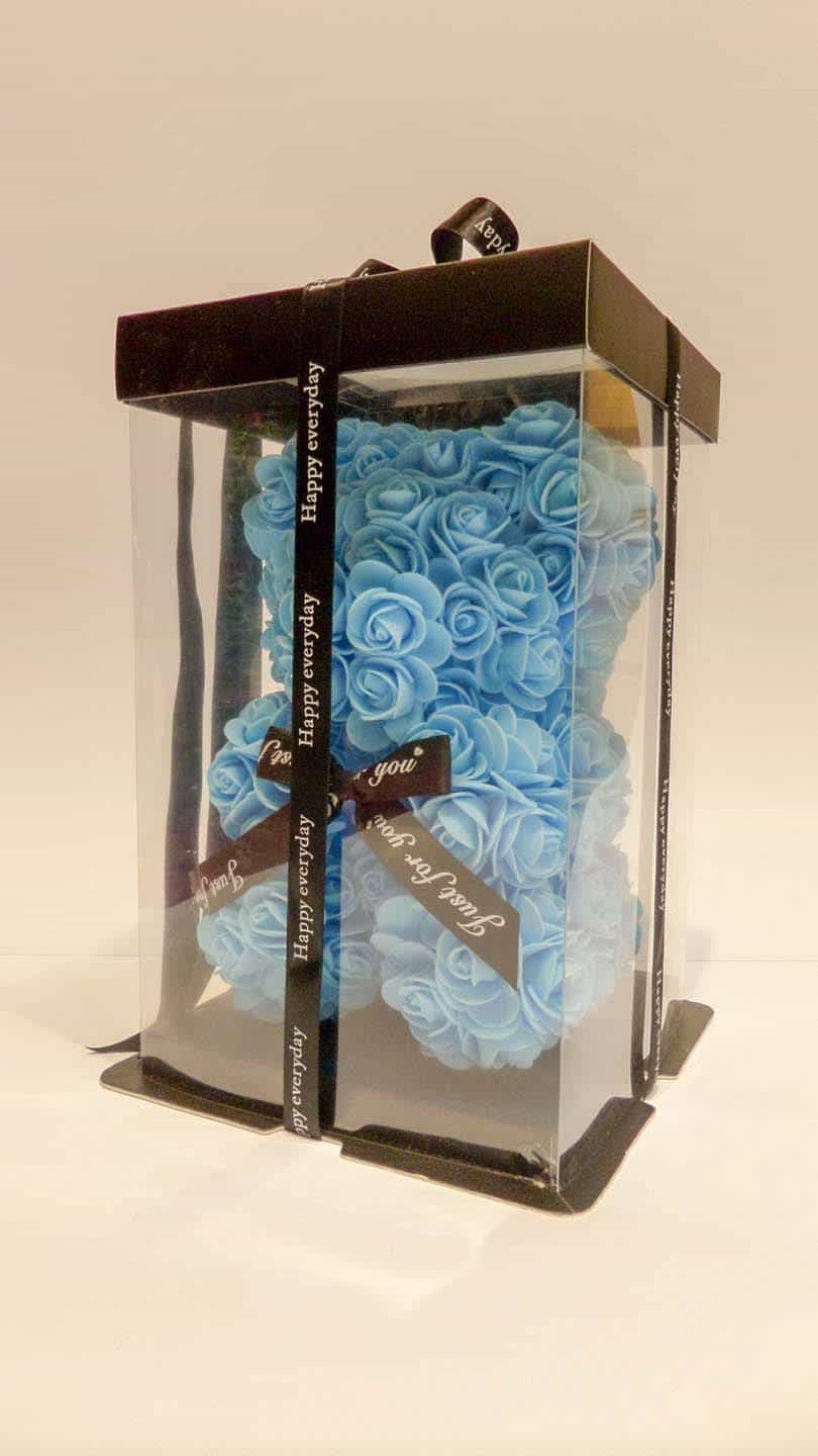 Rose bear σιέλ 25 εκατοστά σε διάφανο κουτί!!!!